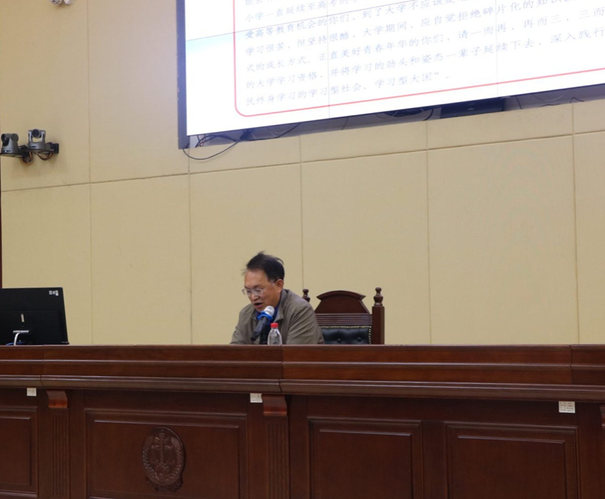 2月24日下午,广西民族大学党委常委、副校长简金宝在创新楼报告厅为数学与物理学院学子讲授以“讲好中国抗疫故事,牢记使命奋勇前进”为主题的开学第一课。