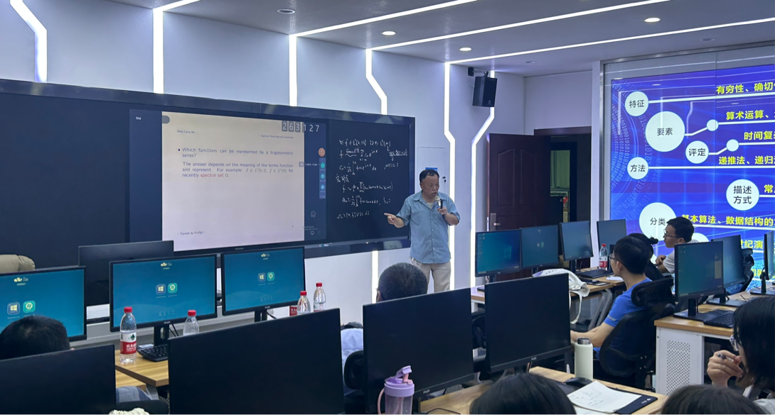 在学术报告中,何兴纲教授作了题为“Uniqueness set problems of trigonometric series and fractal theory”的报告。何兴纲教授介绍了三角级数的展开式和Borel集中所具有的一些性质,还讲述了Rieman提出的三角级数的三个基本问题和Fourier- Stieitjes级数解的唯一性集。