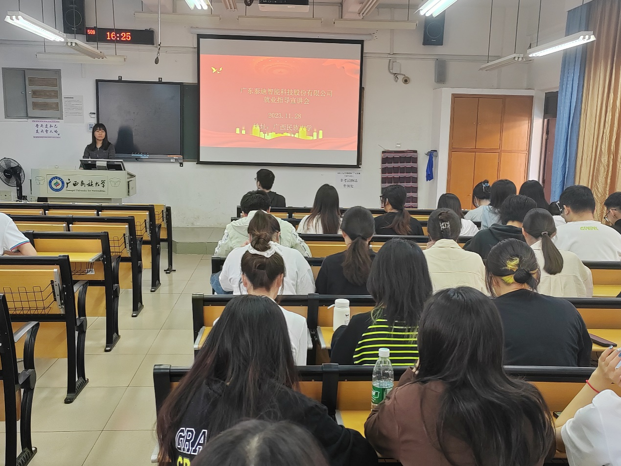 为了加强2024届毕业生就业意识,促进毕业生就业,11月28日下午,数学与物理学院联合广东泰迪科技股份有限公司于学友楼509开展毕业生就业招聘宣讲会,2020级信息与计算科学全体同学参加。