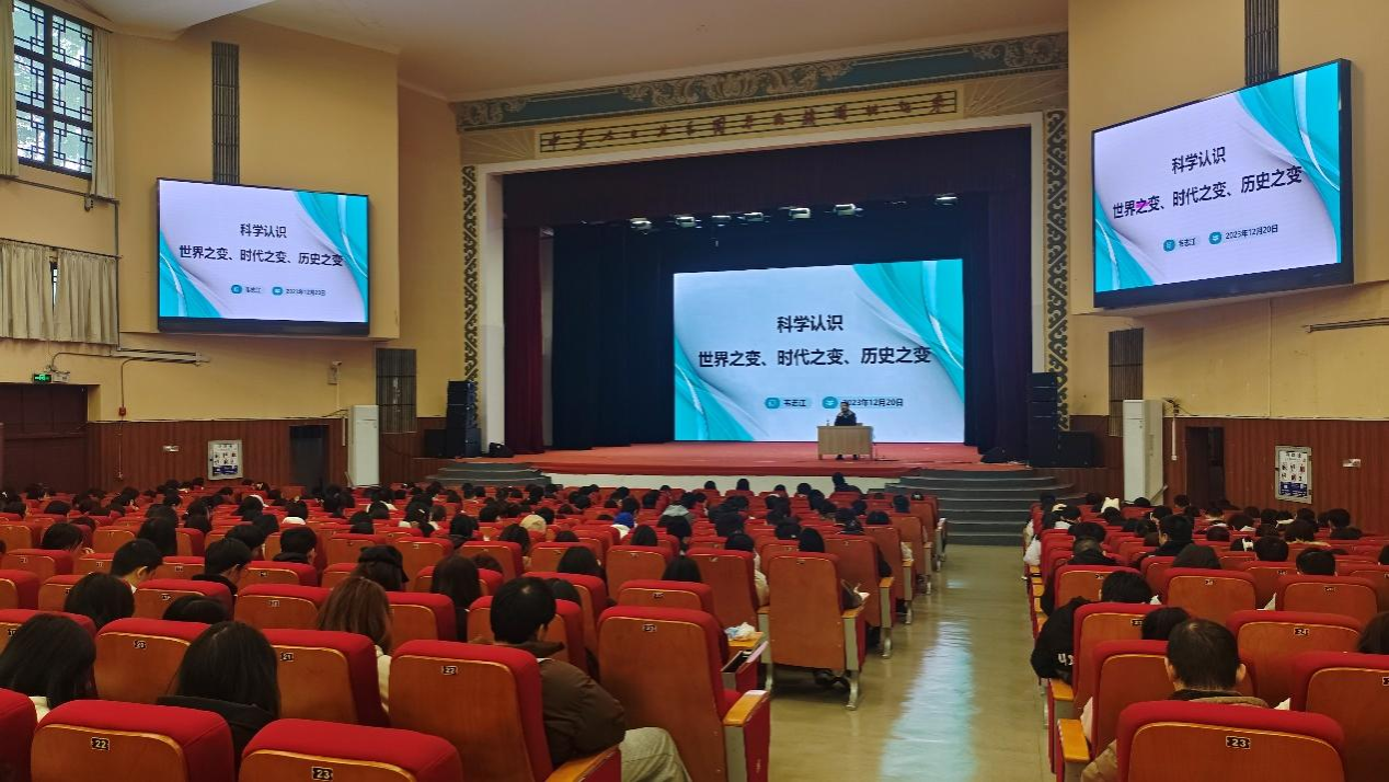 12月20日下午,数学与物理学院在相思湖校区大礼堂开展形势与政策课,学院党委书记韦志江以《科学认识世界之变、时代之变、历史之变》为题为学院2020级、2021级全体学生讲授。