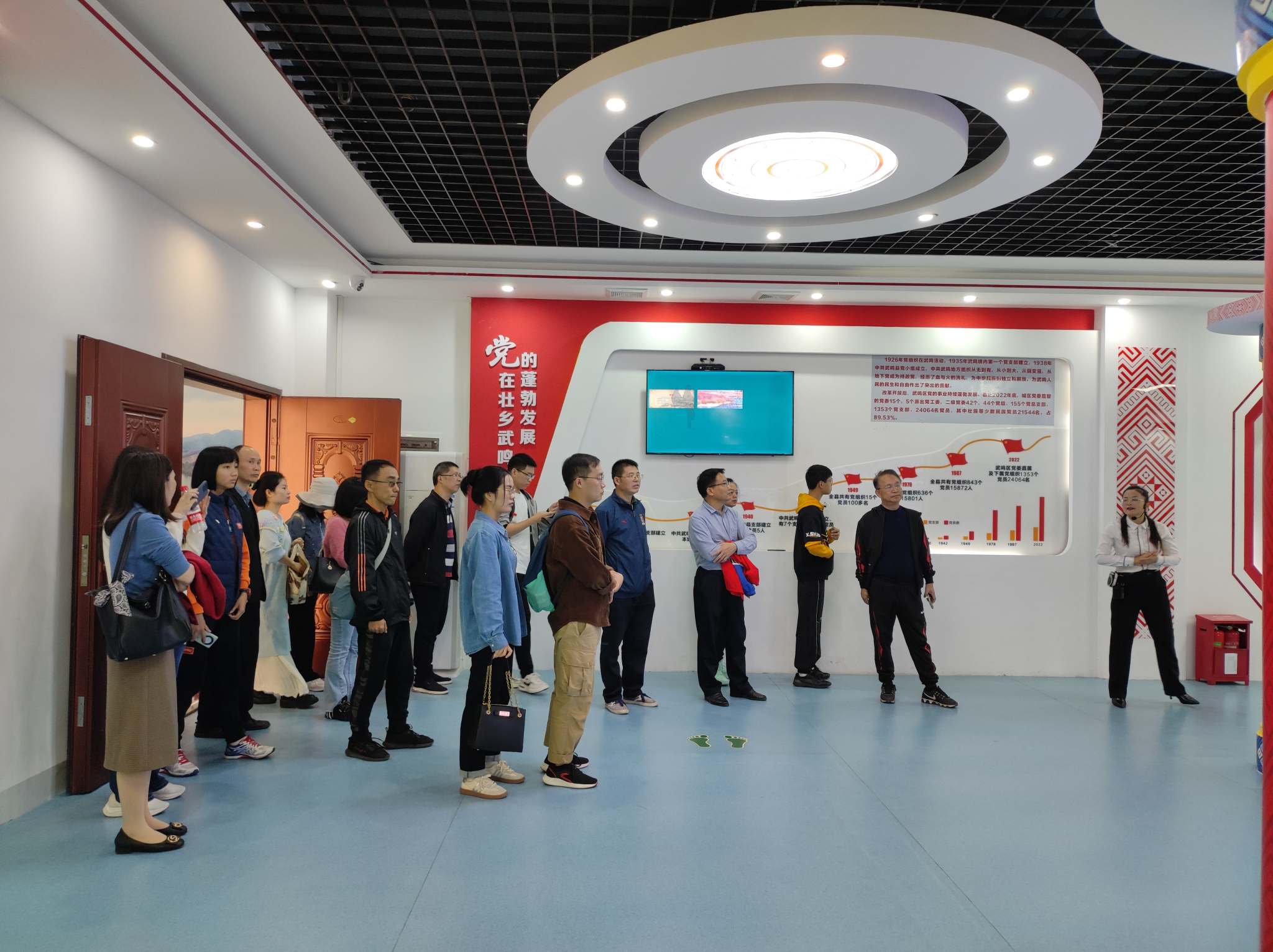 在纳天党建文化园,党员同志们跟随讲解员参观了“红色记忆”步道和党建馆,重温党从一大开始的发展历程,感受我党艰苦卓绝,带领全国各族人民完成救国大业与兴国大业,并把我国建设成社会主义现代化强国的历程。此外,党员们参观了纳天党建馆,通过3D等多媒体的互动,领略了武鸣壮乡发展所取得的成就。