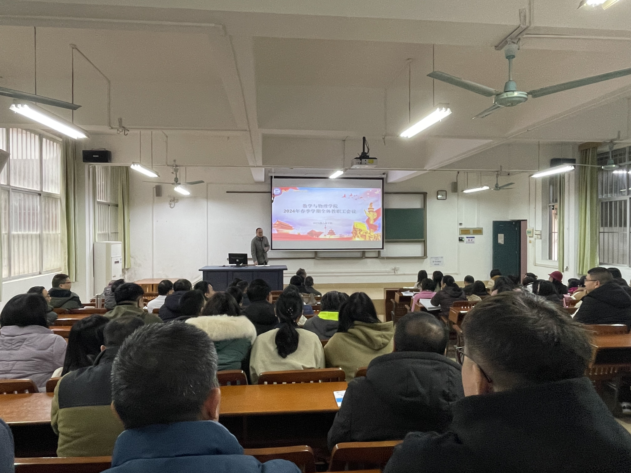 2024年3月1日,数学与物理学院在创新楼八梯教室组织召开2024年春季学期教学评估工作推进会议。会议由学院院长刘恒主持,党委副书记邹同霞,副院长莫晓华及全体教职工参加。