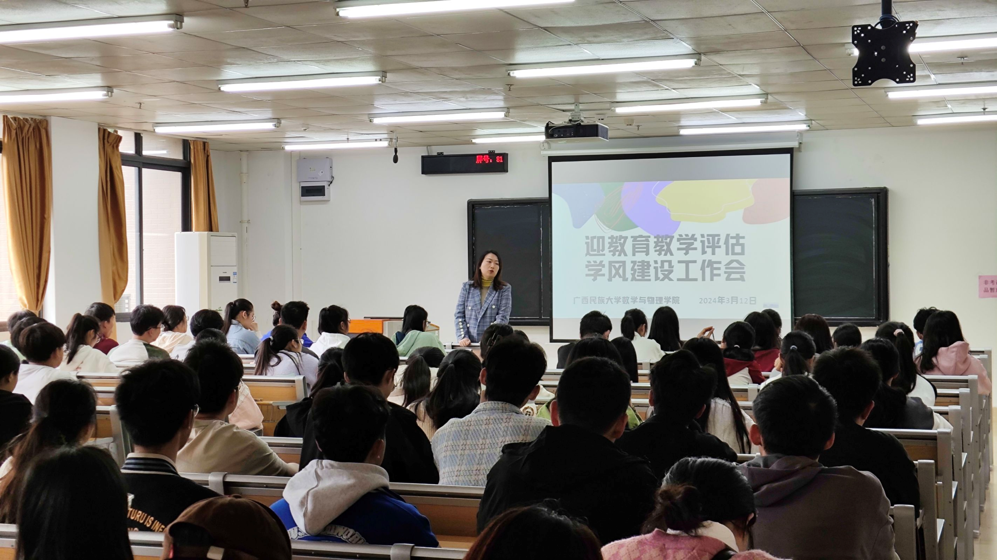 312日,数学与物理学院于国教楼203教室开展迎教育教学评估学风建设工作会。本次会议由学院团委书记张佳老师主持,各班班长、团支书参会。