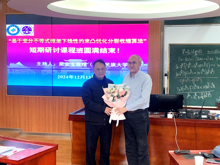 为促进广西运筹学与相关学科的交流与发展,2024年12月9日至13日,“变分不等式框架下线性约束凸优化分裂收缩算法”短期研讨课程在广西民族大学开展,由知名学者南京大学何炳生教授讲授课程。本次短期研讨课程由广西运筹学会,广西应用数学中心(广西民族大学),广西高校黄大年式教学团队(数学与应用数学),乐天使承办。