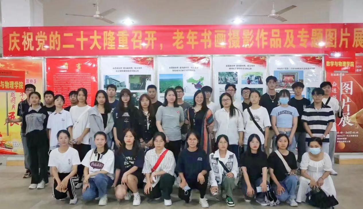 为庆祝党的二十大隆重召开,学习贯彻党的二十大精神,广西民族大学于10月18日-24日在校老年活动中心举办“庆祝二十大、永远跟党走”老年书画摄影作品及专题图片展。书画摄影作品及图片展展出期间,数学与物理学院组织师生前往参观。