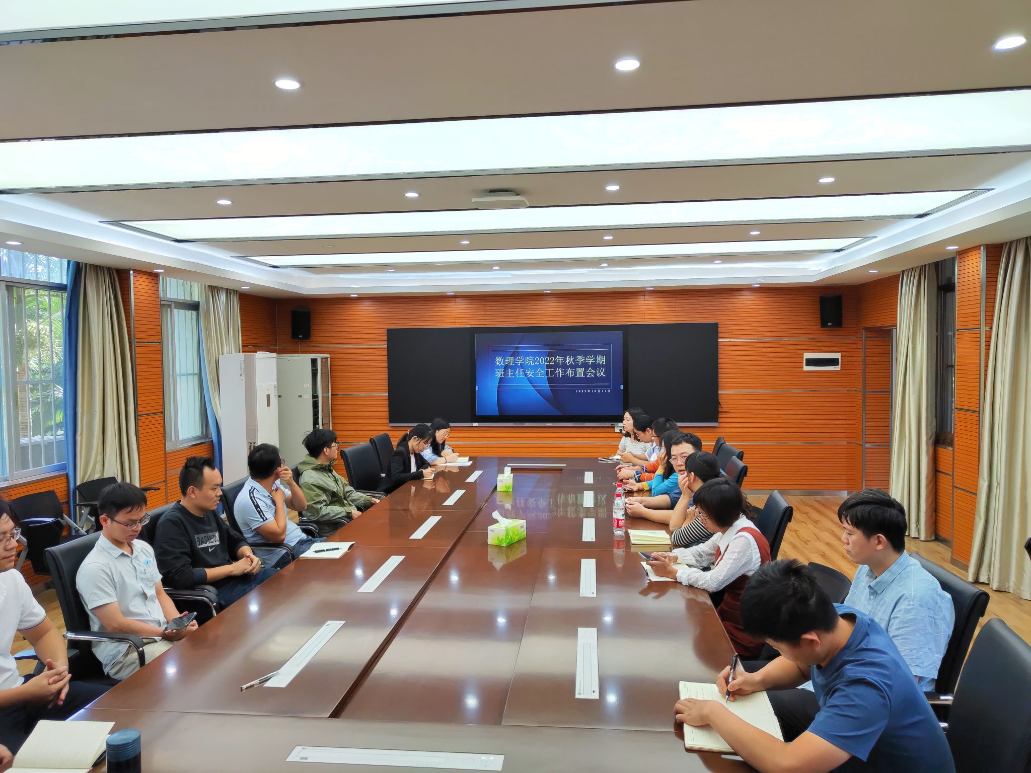 2022年10月11日下午,数学与物理学院在创新楼301会议室召开班主任安全工作布置会议,会议由学院党委副书记邹同霞主持,全体辅导员、班主任参会。